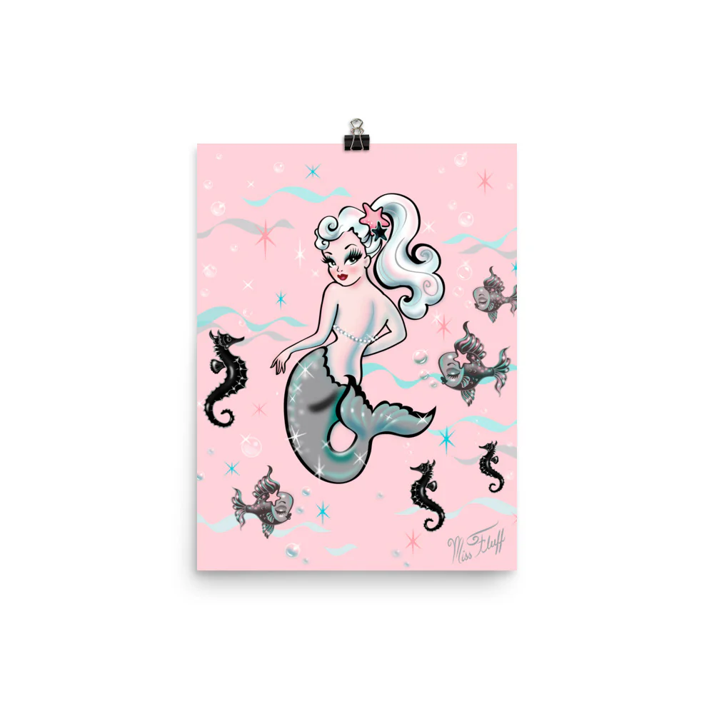 Pearla the Mermaid on Pink • Art Print