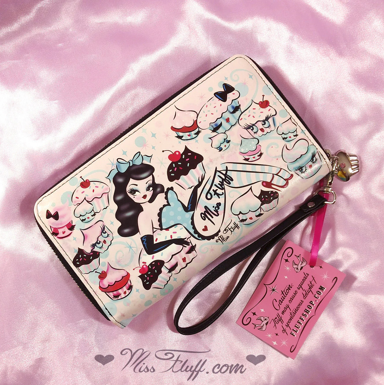 It features my classic pinup inspired design of the Cupcake Dolls in soft candy colors with whimsical cupcakes that have long, luscious lashes, and cute pinup dolls lounging amidst the cupcakes in a magical, sugar sparkly world!